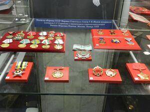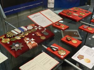 - две медали «Золотая Звезда» Героя Советского Союза (№ 10684 — 07.05.1965, № 118 — 21.12.1982)[19][20].