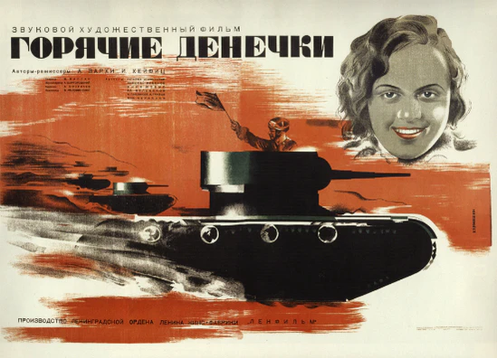 Герои «военной» комедии Хейфица и Зархи «Горячие денёчки» <…> при первом знакомстве кажутся очень далёкими от социалистических образцов. Боевой командир находится в мучительном раздумье, бросить ли ему любимую девушку или позорно провалиться на бронетанковом учении. А любимая девушка, так та и вовсе кажется «мещанкой», она готова бросить всё и сама броситься в воду от неудачной, неразделённой любви.
