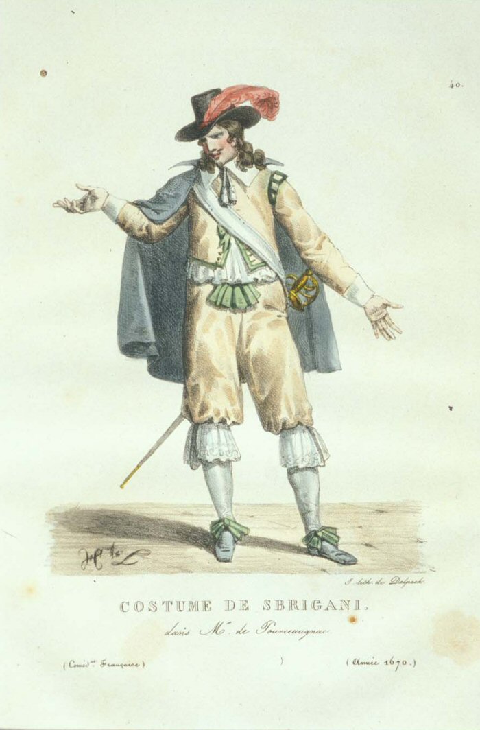 Эскизы костюмов комедии «Господин де Пурсоньяк». 1670 г. 1 - Пурсоньяк, 2 - Юлия, 3 - Сбригани. | ||||||||||