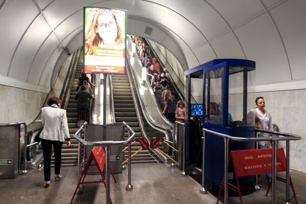 В 2007 году во всю стену подземного перехода к эскалаторному залу вестибюля на набережной канала Грибоедова был смонтирован рекламоноситель, ставший на тот момент крупнейшим в петербургском метро[4].
