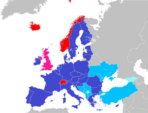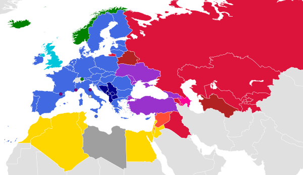 (выделены: жирным — официальные кандидаты в члены, жирным курсивом — потенциальные кандидаты по текущей программе расширения):