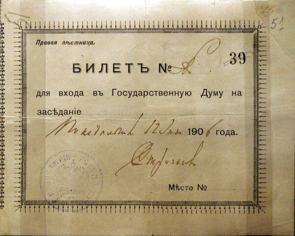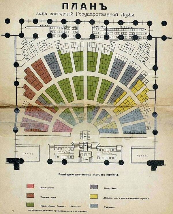 Первое заседание Государственной думы состоялось 27 апреля 1906 года в Таврическом дворце Санкт-Петербурга (после приёма у Николая II в Зимнем).