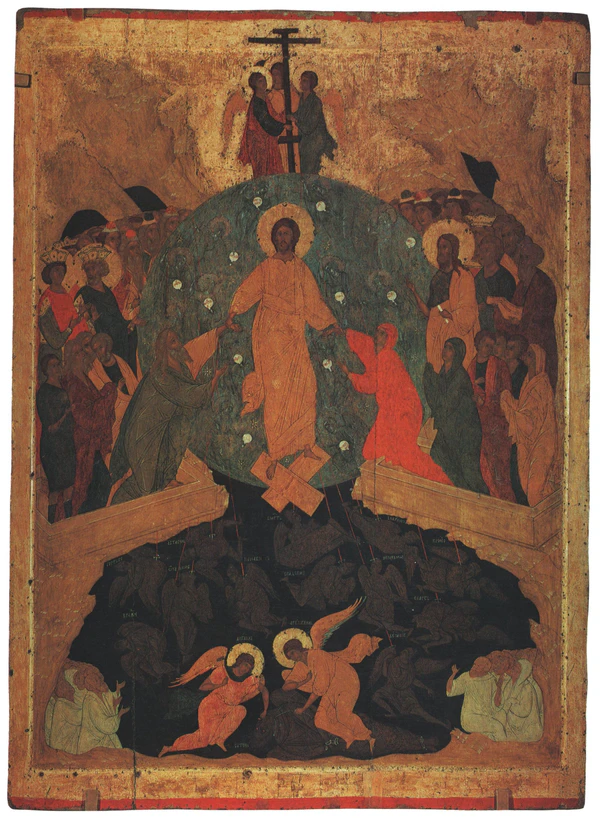В разделе древнерусского искусства широко представлены иконы XII—XV веков (например, Ангел Златые Власы, Богоматерь Умиление, Дмитрий Солунский, Чудо Георгия о змие, Борис и Глеб и др.), произведения Андрея Рублёва, Дионисия, Симона Ушакова и других мастеров. Всего коллекция Русского музея составляет порядка 5 тысяч икон XII — начала XX века.