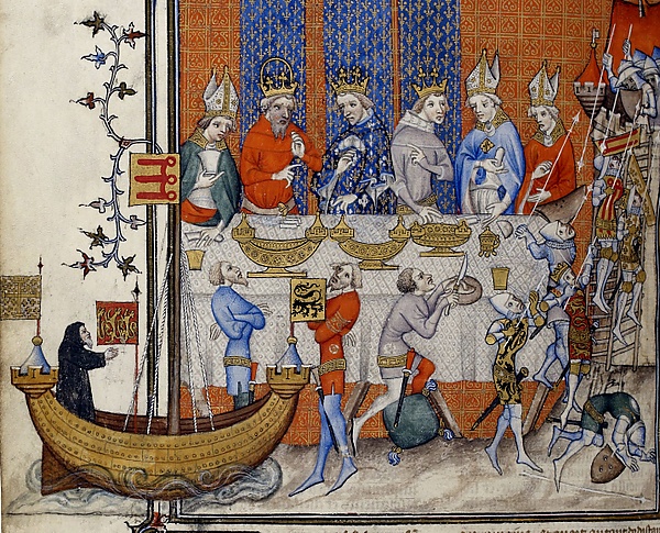 Такие банкеты посещало большое количество гостей. Самые знатные особы располагались за отдельным столом, который часто устанавливали на возвышении, и, вероятно, им подавали другую пищу[1].