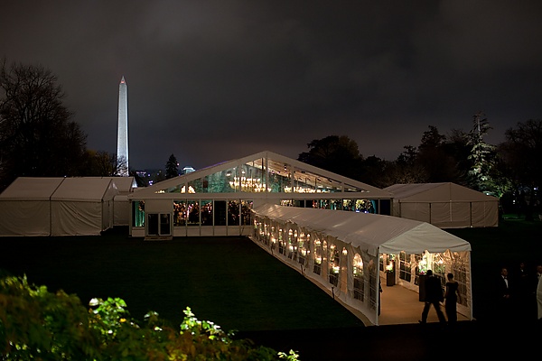 По традиции, в день банкета сначала проходит официальная церемония встречи на Южной лужайке Белого дома.