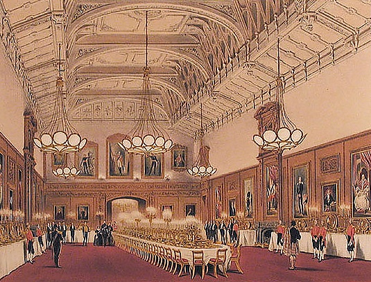 Организацией банкета руководит глава государственного двора. Подготовка начинается за месяцы до проведения банкета. Окончательный план рассадки утверждают король и Министерство иностранных дел. Банкет состоит из четырёх блюд: рыба, основное блюдо, пудинг и десерт (фрукты, кофе и птифур). Подача осуществляется с использованием позолоченного Гранд-сервиза Георга IV, состоящего из 4000 предметов[16]. Для каждого гостя предусмотрено шесть бокалов (для воды, красного и белого вина, десертного вина, шампанского и портвейна)[17] и до 12-ти столовых приборов. Меню выбирает лично король из четырёх вариантов, предложенных дворцовыми шеф-поварами. Алкогольные напитки поставляют из правительственного винного погреба, а блюда готовят придворные повара.