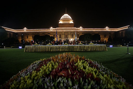 В Индии государственные банкеты в честь глав иностранных государств и правительств проводят во дворце Раштрапати-Бхаван[14], официальной резиденции президента в Нью-Дели. На таких приёмах, которые обычно посещают более ста гостей, присутствуют члены правительства Индии, включая вице-президента и премьер-министра, а также видные индийские и зарубежные бизнес-лидеры.