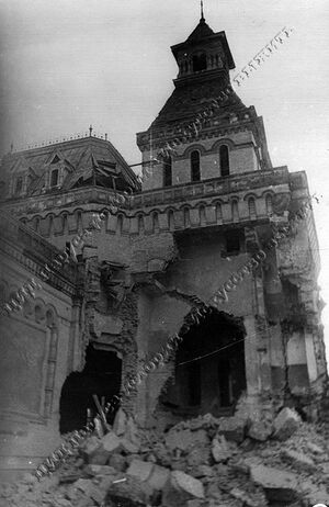 … 16-го апреля 1943 года немецко-фашистскими бомбардировщиками была сброшена фугасная авиабомба весом 250 кг, которая, попав в здание, разорвалась, причинив ему весьма значительные разрушения.