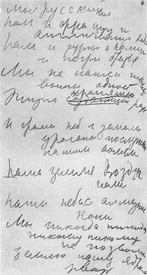 Здесь будет паломничество для охотников до пикантных деталей обывателя. Волна обывательщины захлестнёт мутной волной неопытные группы молодёжи, создаст возможность для «леваков» и космополитов организовывать здесь книжные и другие выставки, выступления, доклады, юбилеи и т. п. Кручёных, Кирсановых, Бурлюков, Катанянов, Бриков, Паперных и пр., а может быть ещё хуже — разных Синявских, Кузнецовых, духовных власовцев, Дубчеков, словом, предателей отечественного и зарубежного происхождения[12].