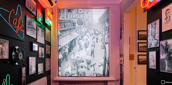 Всё это будто постоянно движется, куда-то падает, колышется, и есть только одно место во всём этом бурном становлении пространства, которое совершенно спокойно, жёстко, статично и симметрично. От него, собственно, и расходятся все линии — или, точнее, к нему и сходятся. Это комната Маяковского, единственное историческое место в этом музее. Как в русском конструктивизме вообще, тут приняты очень конкретные, вещественные метафоры, комната буквально превращена в «комнатёнку-лодочку», где он «проплыл три тыщи дней», — она плывет через эту инсталляцию. Прожил — и застрелился. Это в каком-то смысле не вполне музей восхождения к самоубийству — и в этой точке вся экспозиция вдруг становится не последовательно изложенной биографией поэта, рассказанной языком авангардной инсталляции, а миром в момент взрыва в мозгу, когда остатки смыслов и слов разлетаются во все стороны, теряя связи друг с другом и пространством. Музей одного, довольно острого мгновения.
