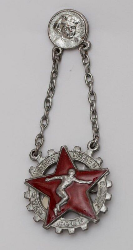 Первые значки были торжественно вручены 23 декабря 1931 года в Колонном зале Дома Союзов 35 спортсменам.[24] Значки первоначально изготавливались из серебра, на подвесах и покрывались горячей эмалью (клуазон). Количество спортсменов, желающих влиться в ряды значкистов, стремительно росло и уже в 1932 году произошло первое значительное изменение значка. Он стал изготавливаться из бронзы, цельноштампованным с последующим серебрением или хромированием. Вскоре на реверсе значка стали крепить булавку для более надёжной фиксации к одежде[25].