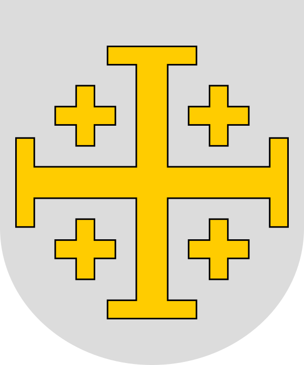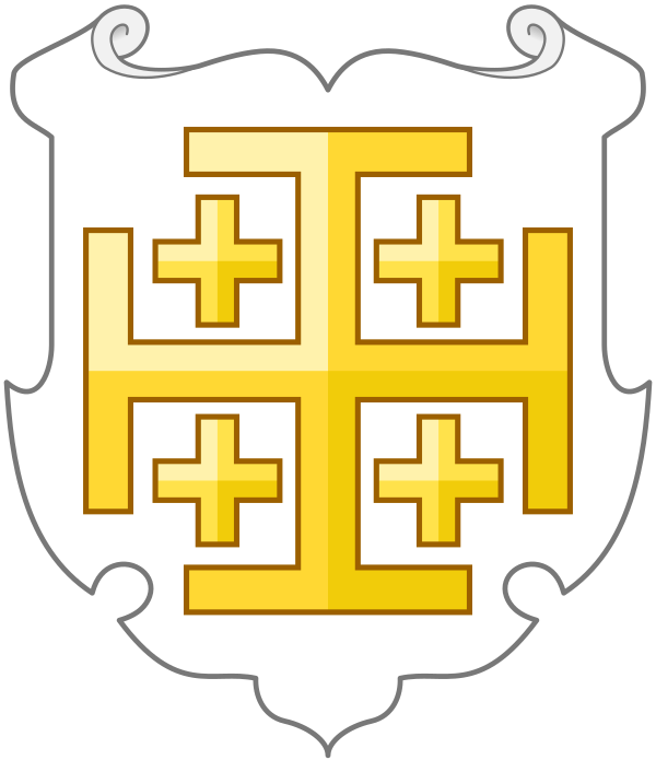 Атрибутируемый герб Готфрида Бульонского представляет собой так называемый иерусалимский крест (крест с Т-образными окончаниями ветвей), окружённый четырьмя меньшими крестами, золотой на серебряном поле. Являющийся нарушением всех канонов геральдики, согласно которым наложение металла на металл и эмали на эмаль не допускается, он был присвоен Готфриду после взятия Иерусалима соратниками, желавшими отметить его заслуги в организации Крестового похода. Позднее иерусалимский крест стал одним из символов христианства.