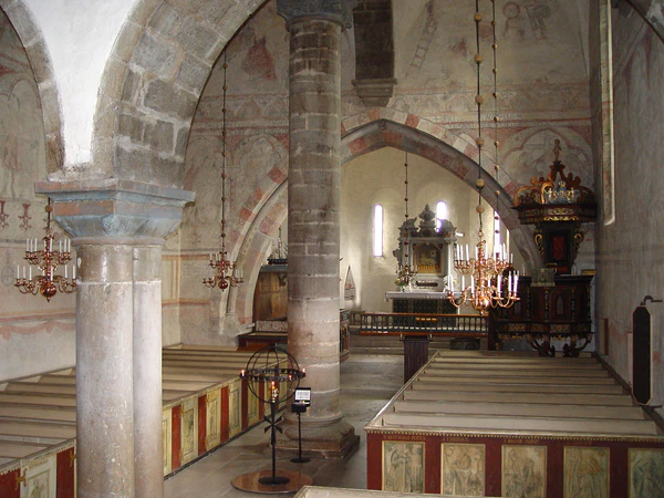 Самые старые части, алтарь с апсидой и ризница, датируются концом XII — началом XIII века (до этого здесь была деревянная церковь, от которой сегодня ничего не осталось). Строительство башни было начато в конце XIII века и завершено в середине XIV века; ранее башня была примерно на пять метров выше, но в середине XIX века была разрушена в результате удара молнии, после чего имела несколько иной вид.