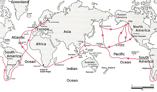 В 1823—1826 годах по рекомендации фон Энгельгардта принял участие в третьем кругосветном плавании О. Е. Коцебу на шлюпе «Предприятие» в качестве геолога[6]. Во время плавания Гофман совместно с двумя другими участниками экспедиции — врачом Генрихом Зивальдом и физиком Эмилием Ленцем — совершил 2 [14] июля 1824 года первое успешное восхождение на Авачинскую сопку и обследовал её кратер[11][12]. Важнейшие научные результаты этого путешествия были опубликованы Гофманом в 1829 году в Берлине[13].