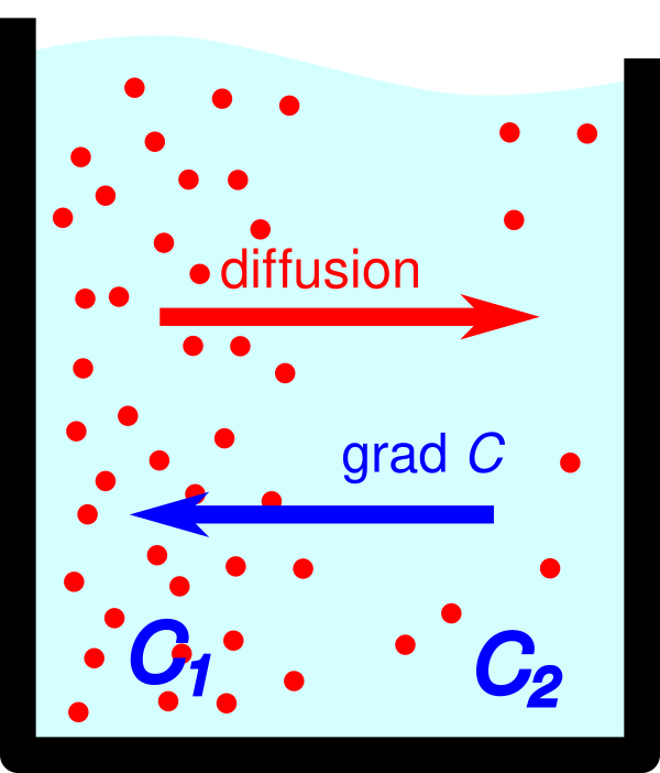 Градиент концентрации может быть причиной переноса веществ, например диффузии. Диффузия осуществляется против вектора градиента концентрации.