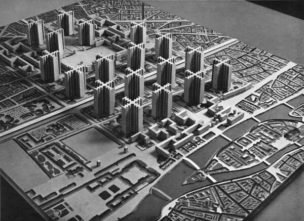 Архитектор XX века Ле Корбюзье внёс свой вклад в градостроительное искусство, предложив смелый план перестройки центра французской столицы. Макет «Современного города на 3 млн жителей», в котором предлагалось новое решение пространства города будущего, созданный в 1922 году, позднее был преобразован в «План Вуазен» (название от фамилии владельца фирмы аэропланов Габриэля Вуазена, поддержавшей проект Ле Корбюзье; 1925). План предусматривал подлинно дизайнерский подход к решению наболевших проблем: сноса старых зданий в центре города и строительства нового делового центра Парижа; для этого предлагалось расчистить 240 гектаров старой городской застройки.