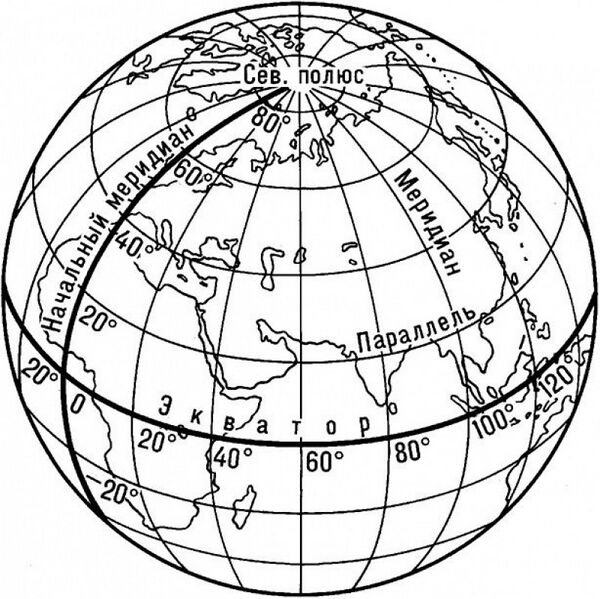 Градусная сеть Земли состоит из системы пересекающихся линий, называемых параллелями и меридианами, имеющих географические координаты. Все точки меридиана имеют одну и ту же долготу, а все точки параллели — одинаковую широту. Их проводят на картах и планах для математических расчётов, а также для определения местонахождения объекта на поверхности Земли[2].