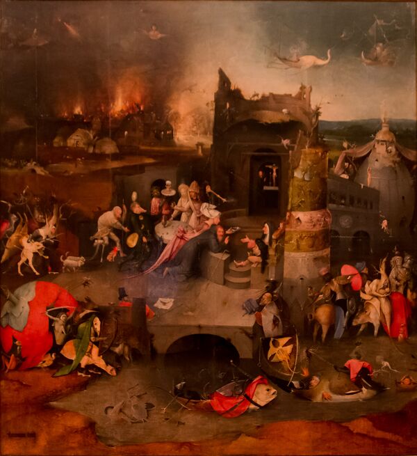 Библейский пласт в восприятии «Града обреченного» многообразен. В романе описаны или упоминаются тягчайшие испытания, обрушивающиеся на горожан: превращение воды в желчь, эрозия построек, нашествие павианов, «тьма египетская». Это наслаивается на средневековые образы ада, например, дантовского или босховского. Отсылки к Данте звучат в монологе пана Ступальского и финальных словах Наставника. Пространство Города напоминает один из уступов «дантовского» ада, на дне которого — поверженный Люцифер. Причём Люцифером, «гордым духом», пан Ступальский называет самого Андрея. В диссертации И. Хауэлл проводится дополнительная параллель. Постройки и пейзажи Города явно отсылают к довоенному Ленинграду — городу юности Андрея и самих авторов, — и русской имперской архитектуре, для которой характерны высокие, сплошные здания, скрывающие центральный дворик, тоже отсылающие к структуре Ада. Пан Ступальский, говоря о Красном Здании, ничему не удивляется: «Раньше, в той жизни, я не раз видел его изображения и описания. Он подробно описан в откровениях святого Антония. <…> И, разумеется, Иероним Босх… Я бы назвал его святым Иеронимом Босхом, я многим обязан ему, он подготовил меня к этому… <…> Его замечательные картины… Господь, несомненно, допустил его сюда. Как и Данте…»[143]. Впрочем, прямой аналогии нет, так как структура Города горизонтальная, и путь Андрея, совпадающий с его духовной эволюцией, ведёт его от центра города, где он работает мусорщиком, на всё более и более дальние окраины, и, наконец, от вообще не отмеченных на картах пространств к нулевой точке[144]. К Библии несомненно отсылает факт, что все жители Города говорят на одном языке. Слова Наставника это подчёркивают: «…Помните, вы все у меня допытывались, как это так: люди разных национальностей, а говорят все на одном языке и даже не подозревают этого. Помните, как это вас поражало, как вы недоумевали, пугались даже, как доказывали Кэнси, что он говорит по-русски, а Кэнси доказывал вам, что это вы сами говорите по-японски, помните?» Одновременно это порождает у горожан страх, что неведомые экспериментаторы устроят в один прекрасный день смешение языков. Рассуждение Кэнси Убуката об этом использует библейскую лексику: «Они словно систематически готовят нас к какому-то жуткому миру, в котором мы должны будем жить отныне, и присно, и во веки веков». Явно библейского происхождения и пронизывающий всё повествование мотив Храма, хотя и лишённый религиозной составляющей[145].