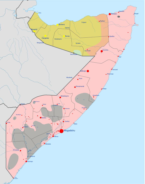 После вывода эфиопских войск в начале 2009 года, исламисты перешли в наступление на позиции переходного федерального правительства Сомали. Боевые действия велись с переменным успехом, несмотря на все старания боевики Аш-Шабааб не смогли захватить Могадишо, хотя вся территория к западу от столицы Сомали была под контролем радикальных боевиков.