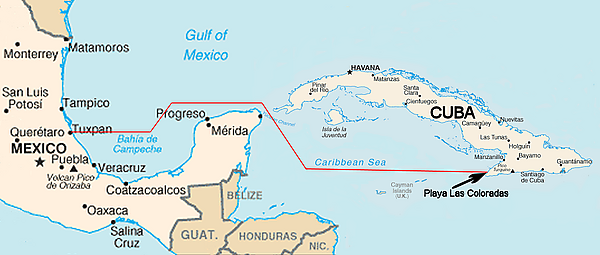 28 ноября яхта вышла в Карибское море, двигаясь со скоростью 7,2 узла. Экспедиционеров мучала морская болезнь, у Гевары обострилась астма, к тому же судно давало течь.