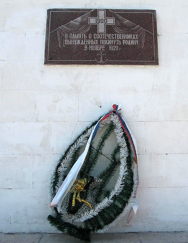 - Третья табличка была установлена в ноябре 1995 года «В память о соотечественниках, вынужденных покинуть Родину в ноябре 1920 года», об около 150 тысяч человек, в том числе около 70 тысяч солдат и офицеров, которые были вынуждены были покинуть Россию после разгрома крымской армии генерал-лейтенанта П. Н. Врангеля[6].