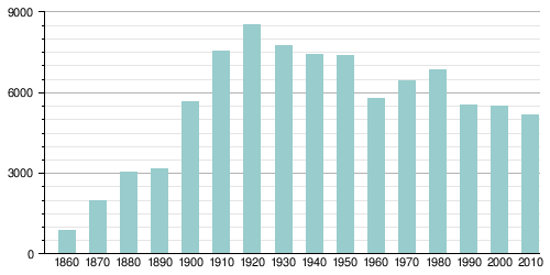 Из 2192 домашних хозяйств 41,3 % представляли собой совместно проживающие супружеские пары (15,3 % с детьми младше 18 лет), в 15,0 % семей женщины проживали без мужей, в 5,6 % семей мужчины проживали без жён, 38,1 % не имели семьи. В среднем домашнее хозяйство ведут 2,29 человек, а средний размер семьи — 2,92 человека. Доля лиц старше 65 лет — 19,0 %. Средний возраст населения — 41,7 лет. В 2014 году медианный доход на семью оценивался в 37 163 $, на домашнее хозяйство — в 28 460 $[4].