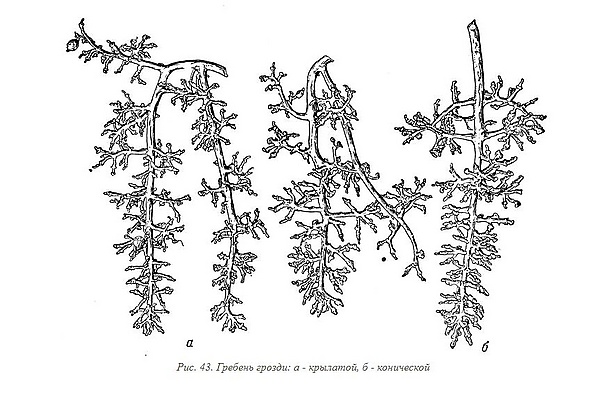 Соцветия после оплодотворения и завязывания ягод преобразуются в гроздь, оси соцветия — в гребень[2]. Гребень состоит из главной оси, от которой отходят ответвления от 2 до 4 порядков. Ответвления высшего порядка оканчиваются плодоножками. Степень развития и характер разветвлений гребня предопределяет форму грозди[3].