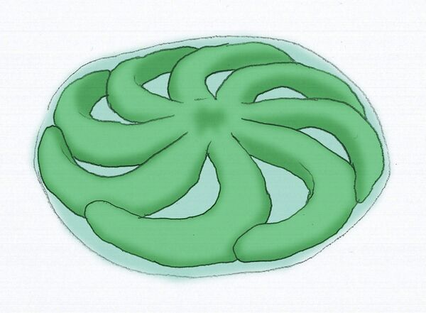 Все каналы пищеварительной системы (за исключением аборального) находятся близко к поверхности тела или снабжаемому органу. Со стороны органа гастродермис образован высокими вакуолизированными питающими клетками, которые перемежаются с половыми клетками и фотоцитами, обеспечивающими биолюминесценцию. На противоположной стороне канала гастродермис образован плоским ресничным эпителием, пронизанным порами, причём каждая пора окружена двумя ресничными венчиками, каждый из которых образован шестью клетками. Реснички нижнего венчика обращены в просвет канала, а верхнего — в мезоглею. Это образование получило название ресничной розетки[17].