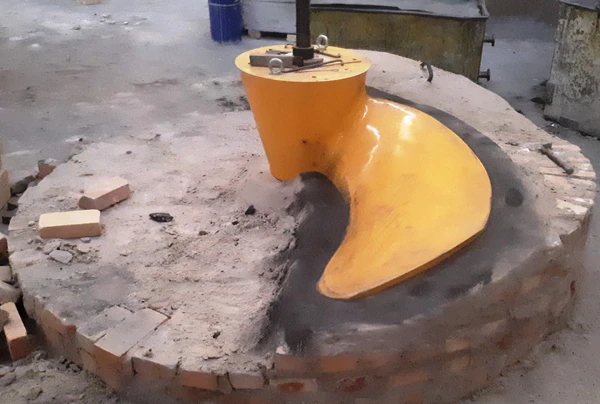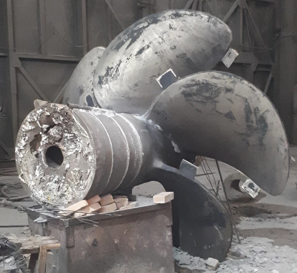 Традиционная технология предусматривает изготовление цельнолитых металлических (из стали или медных сплавов) гребных винтов литьём в песчаные формы, получаемые методом ручной или частично механизированной формовки. При этом форма представляет собой набор нижних и верхних горок, которые формируют поверхности лопастей, а формовка ведётся по однолопастной модели[4]. Конкретные технологические приёмы определяются размерами, конструкцией и массой гребного винта, а также его серийностью. Например наличие или отсутствие в отливке центрового отверстия (которое в будущем будет расточено под вал гребного винта) в ступице определяется наличие или отсутствие центрового стержня в форме. Если гребные винты изготавливаются крупной серией, то при формовке горок используются многоразовые стальные рамки или специальные каркасы имеющие форму приближенную к форме лопастей винта (при единичном производстве изготовление такой дорогостоящей оснастки нецелесообразно). В настоящее время, в редких случаях, для изготовления отливок гребных винтов используется современное оборудование с числовым программным управлением, например с помощью инструмента, установленного на роботизированный манипулятор фрезеруют сразу литейную форму, без изготовления модельного комплекта. Применяются роботы и при фрезеровке моделей из различных материалов, например пенопласта или МДФ. Кроме того используются методы трёхмерной печати моделей гребных винтов из пластика.