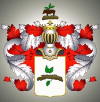 На серебряном поле горизонтально изображен пень с листьями, два вверху и один внизу.