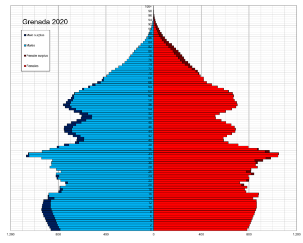 Этно-расовый состав: представители негроидной расы 82 %, мулаты 13 %, белые и индийцы 5 %, а также малочисленные остатки индейского населения. Многие жители Гренады эмигрировали в Великобританию, США и другие государства Вест-Индии.