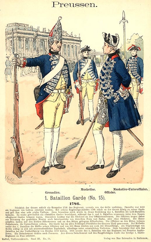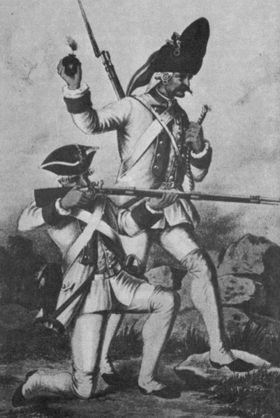 Созданный в 1671 году из немецких волонтёров Королевский германский полк всегда носил высокие шапки, подобные гренадерским. Свою известность эта часть приобрела только в последние дни своего существования, так как именно она стала участницей события, послужившего поводом для штурма Бастилии 14 июля 1789 г., вызвав несказанное недовольство среди парижан двумя днями ранее, когда кавалеристы этого полка зарубили несколько манифестантов, собравшихся на площади Людовика XV.