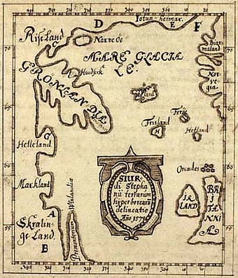 В 1473—1478 годах по инициативе датского короля Кристиана I для восстановления контактов с норманнскими поселениями в Гренландии организованы были экспедиции Дидрика Пининга, Ганса Потхорста и Йона Скольпа, в организации которых принял участие также португальский мореплаватель Жуан Кортириал и король Португалии Афонсу V. По мнению профессора Копенгагенского университета Софуса Ларсена (1925), участники их могли также достигнуть и берегов Америки — за 19 лет до Колумба[44][45]. Из сохранившегося письма бургомистра Киля Грипа королю Кристиану III, датированного 3 марта 1551 года, явствует, что отправленные его дедом «адмиралы» (дат. sceppere) Пининг и Потхорст столкнулись там с «гренландскими пиратами», вероятно, эскимосами, для устрашения которых установили на скале Хвитсерк напротив Снэфеллсйокуля пирамиду из камней[46]. Утверждение известного шведского историка и географа XVI века Олауса Магнуса о том, что около 1494 года объявленные вне закона за занятие пиратством Пининг и Потхорст сами осели в Гренландии, разделявшееся Фритьофом Нансеном, современной наукой признаётся баснословным[47].