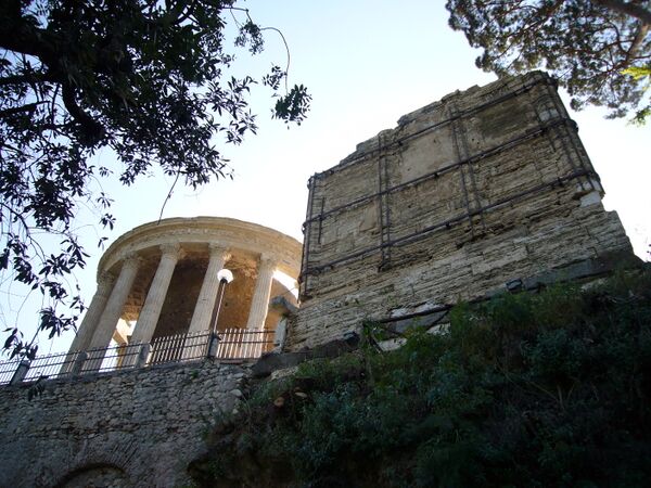Представляет интерес и круглый храм Весты, относящийся к поздней республиканской эпохе и реставрированный Лучио Джеллио, судьёй и куратором общественных работ в Тибуре в 1 в. до н. э. Позднее храм был преобразован в христианскую церковь, а в конце XIX века ему был возвращён первоначальный облик. Изначально храм был покрыт конической кровлей с отверстием для выхода дыма от священного огня. Храм окружён восемнадцатью колоннами коринфского ордера с тонко вырезанными каннелюрами. Осталось всего десять колонн. Пол покрыт плитками из травертина. Фриз украшен букраниями и цветочными гирляндами, изображениями виноградных лоз, пшеничных колосьев и фруктов. Свод был полностью украшен двумя ордерами кессонов с розами в центре каждого. Из храма открывается вид на реку Аньене и оливковые рощи на холмах Тиволи.
