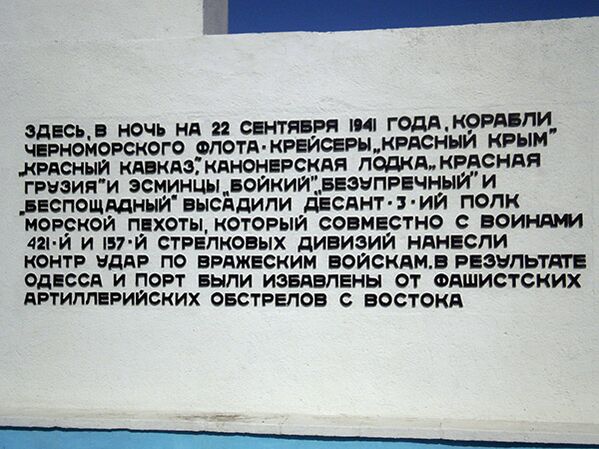 В сентябре 1941 г. 11-ая немецкая армия Э.Манштейна прорвала оборону войск РККА и подошла вплотную к Перекопу. Высадку десанта на побережье поддерживали огнём артиллерии крейсеры «Красный Кавказ» и «Красный Крым», эсминцы «Безупречный», «Беспощадный» и «Бойкий», а также бронепоезда и артиллерийские батареи Одесского оборонительного района[11].