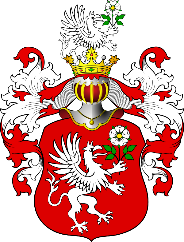 Над щитом из дворянской короны выходит подобный же гриф с розою, влево. Герб Грифоруж (употребляют: Розены) внесен в Часть 2 Гербовника дворянских родов Царства Польского, стр. 75