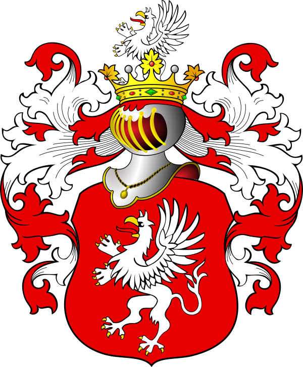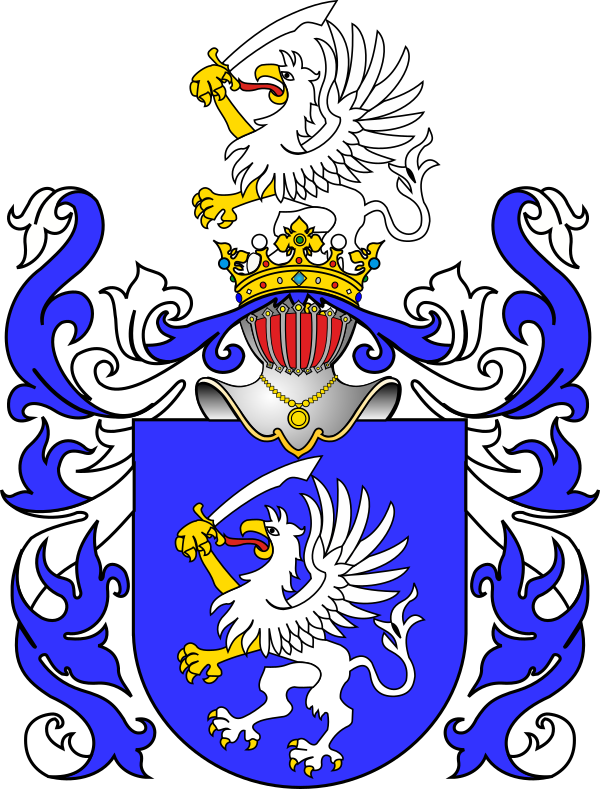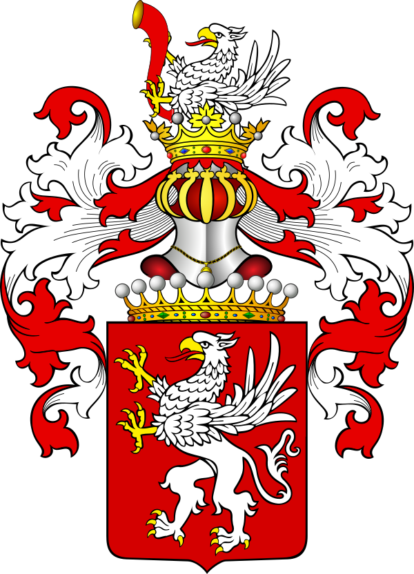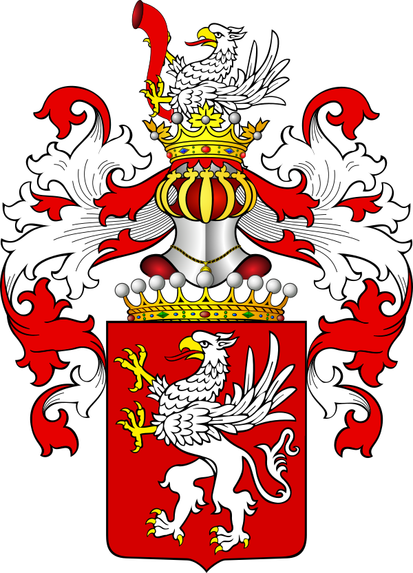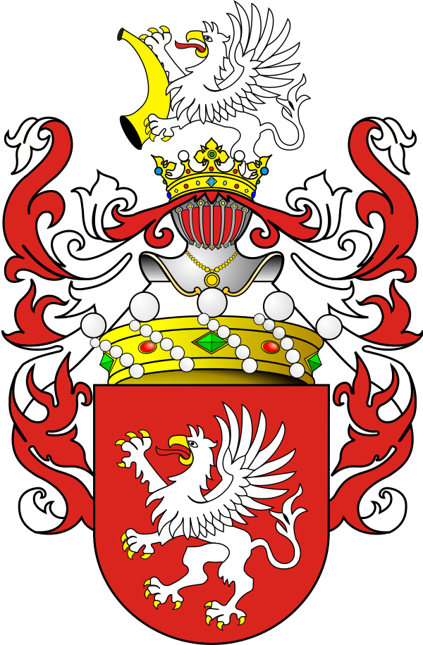 - Герб Гриф: в красном поле серебряный гриф, взвившийся на дыбы, влево. В навершие шлема выходящий такой же гриф, с золотым охотничьим рогом, влево.