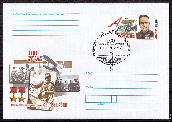 - По случаю столетия со дня рождения Героя Белпочта ввела в обращение художественный маркированный конверт с оригинальной маркой.