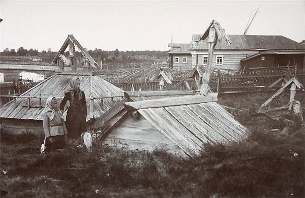 В дохристианский период у восточных славян умершего опускали в могилу, выкопанную в земле в виде большого сруба, клали туда его одежду, съестные припасы, сосуды с напитками и чеканную монету, а затем закладывали могилу сверху, устанавливая небольшой навес. Именно подобные сооружения и назывались гробом. Самые ранние погребения подобного типа у славян датируются IV в., а в VI в. распространяется практика засыпать данные погребения землёй[5]. Аналогичные погребения присутствовали и у древних скандинавов. К раннему средневековью среди принявших христианство народов Европы для захоронения упокоенных в землю стали применять деревянные гробы. На Руси гроб иначе назывался домовиной. Также словом «домовина» обозначались надмогильные сооружения в виде небольшого сруба с двухскатной крышей, строившиеся преимущественно на Русском Севере.