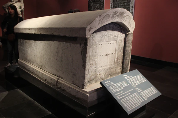 Гроб украшен тонкой резьбой, представляющей традиционную китайскую космологию. Мотивы также включали двух охранников с ореолом в некитайском стиле и огненный алтарь, который мог быть зороастрийским[1].