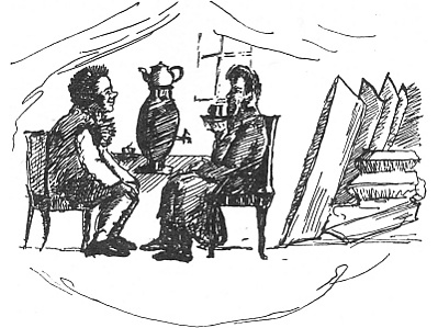 Просвещённый читатель ведает, что Шекспир и Вальтер Скотт оба представили своих гробокопателей людьми весёлыми и шутливыми, дабы сей противоположностию сильнее поразить наше воображение. Из уважения к истине мы не можем следовать их примеру и принуждены признаться, что нрав нашего гробовщика совершенно соответствовал мрачному его ремеслу[5].