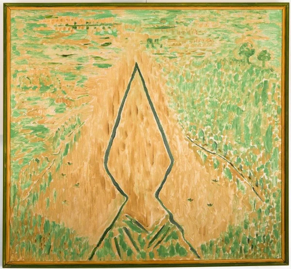 На полотне представлен символический образ хантыйского бога Куль-отыр. Его клинообразная голова напоминает острое копьё. Фигура выделена чётким тёмно-зелёным абрисом на светло-коричневом фоне реки Салым. Справа от бога изображены три обласа, в каждом из которых по одному человеку, выполненные в условной манере. Слева от фигуры плавают четыре уточки. По обеим сторонам реки видна зелень перелесков, а в верхнем правом углу композиции выделяются два больших дерева с пышными кронами.