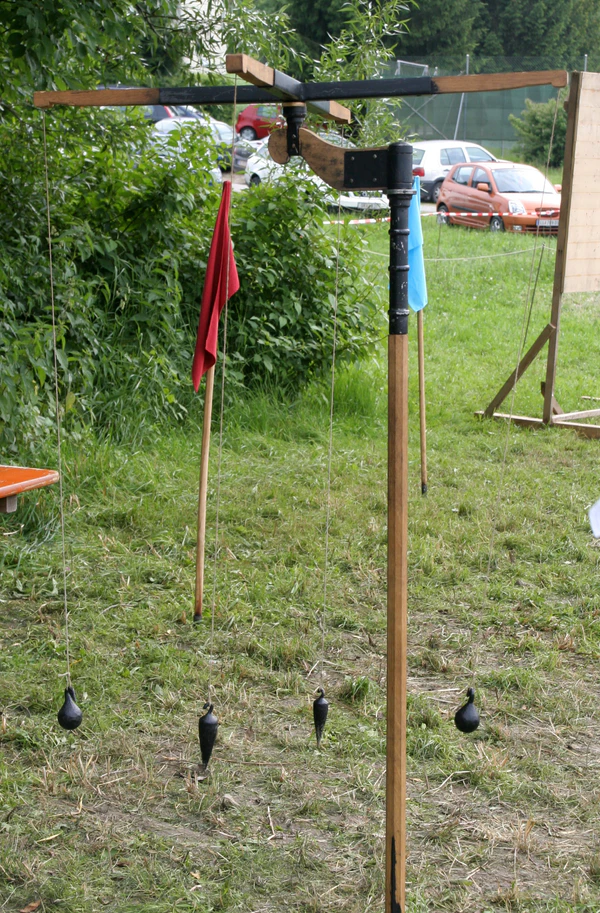 Состоит из длинного вертикального шеста, к вершине которого прикреплена поперечина (или крест) на поворотном механизме; она может перемещаться и горизонтально. К каждому концу поперечины (креста) прикреплен отвес. Установив грому в грунте, агрименсор фиксировал крест соответственно сторонам света, ориентируясь по положению солнца и по отвесам. Помощник отходил на сто шагов и клал груз, отмечающий направление, в соответствии с указаниями агрименсора. Так отмечались оси будущей разметки, соответствующие сторонам света.