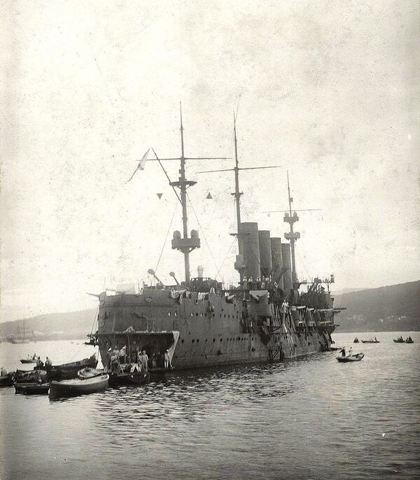 - 24 мая 1905 года подорвался на мине у о. Русский и был введён в строй только в сентябре 1905 года. После этой войны вернулся на Балтийское море, прибыл в Либаву 26 марта 1906 года.