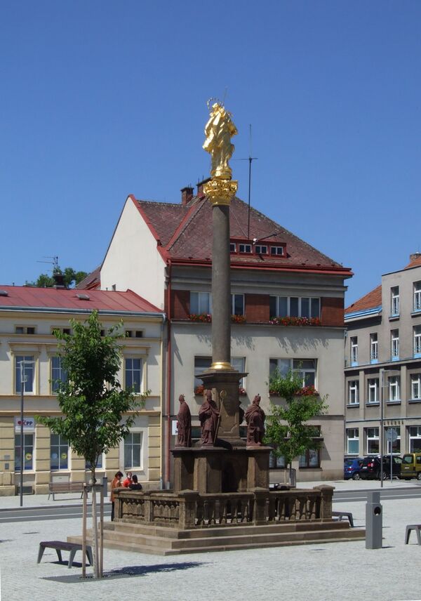 - Марианский столб на городской площади, поставленный в 1725 году.