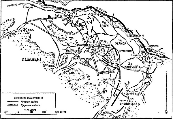 При Гросс-Егерсдорфе в числе прочих отличился молодой генерал П. А. Румянцев[2][3].