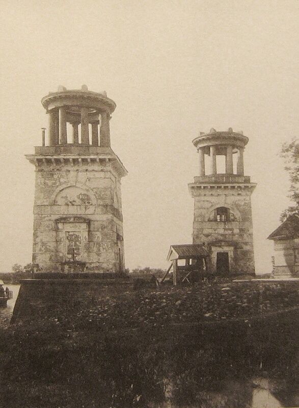 - две каменные пирамидальные причальные башни 1815 года,