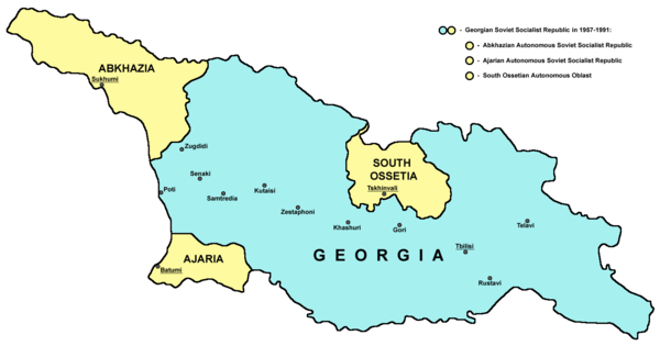 После распада СССР и преобразования Грузинской ССР в современную Грузию, в результате ряда вооружённых конфликтов (Южноосетинская война (1991—1992), Война в Абхазии (1992—1993)) образовалось 2 неподконтрольных тбилисскому правительству непризнанных государства — Абхазия и Южная Осетия, претендовавших на территории бывшей Абхазской АССР и Юго-Осетинской АО, соответственно. Грузия получила международно-правовое признание большинства стран мира в 1992 году, Абхазия и Южная Осетия же долгое время оставались непризнанными.