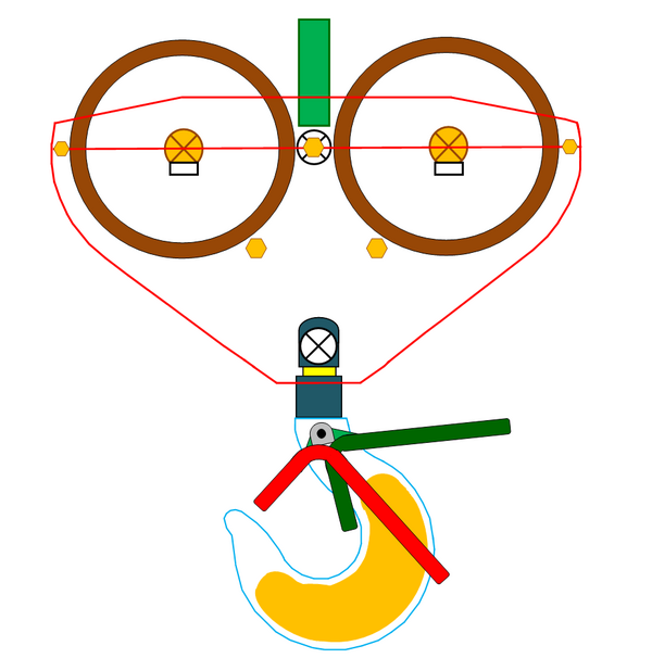 В нормальной крюковой подвеске крюк с гайкой на хвостовике с помощью упорного шарикоподшипника со сферическими шайбами опирается на траверсу, которая шарнирно закреплена в отверстиях серёг и защитных щитках. В верхней части серёг и щитков имеются отверстия, в которых неподвижно закреплена ось с опирающимися на неё посредством подшипников блоками. Шарнирное крепление траверсы в серьгах необходимо для того, чтобы крюк вместе с траверсой можно было повернуть относительно продольной горизонтальной оси траверсы, тем самым облегчая зачаливание груза. Между щитками размещают согнутый из листовой стали кожух, который предназначен для предотвращения выпадания ослабленного каната из ручья блока[1].
