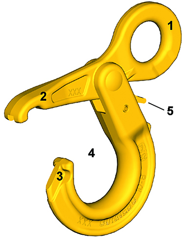Каждый крюк должен выдерживать статическую нагрузку, превышающую его грузоподъёмную силу на 25%. Грузовые крюки снабжают предохранительными замками, предотвращающими самопроизвольное выпадение съёмного грузозахватного приспособления[1].
